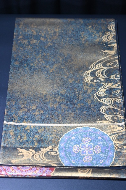 - 袋帯 六通 正絹 金箔 流水文 宝相華文 美品