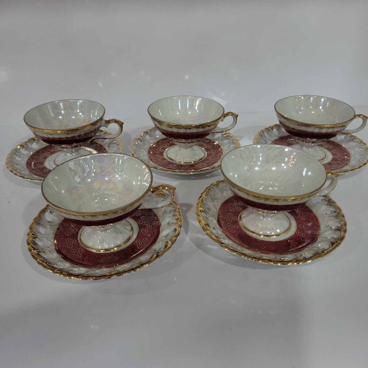 - №9011 中古食器 昭和レトロ GLORY NAGOYA オーロラ 金彩 カップ&ソーサー カップ口径約10㎝ ソーサー15㎝ 5客セット