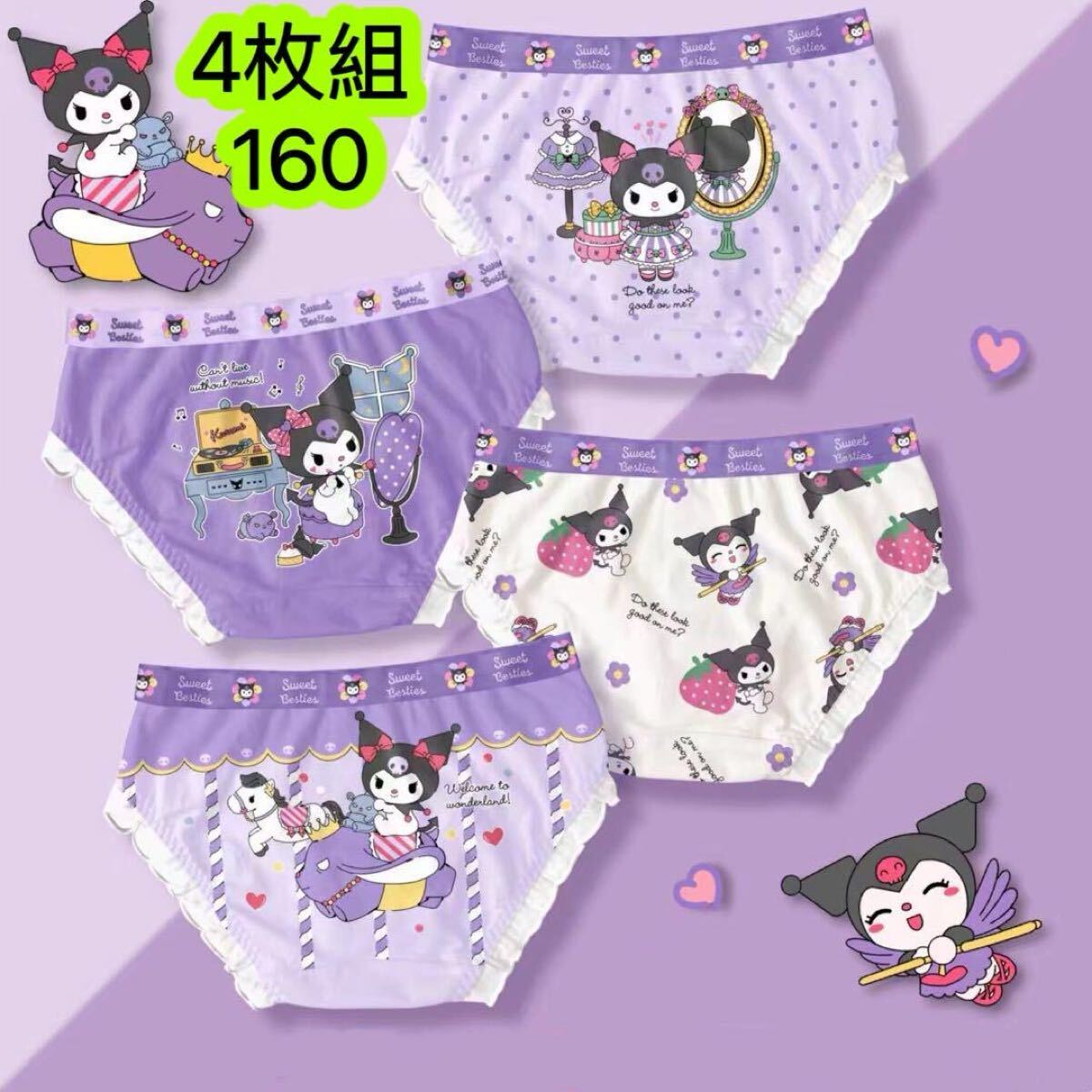 > 4枚組160女の子ボクサーパンツ 女の子下着 綿肌着学生 キャラクター 085号