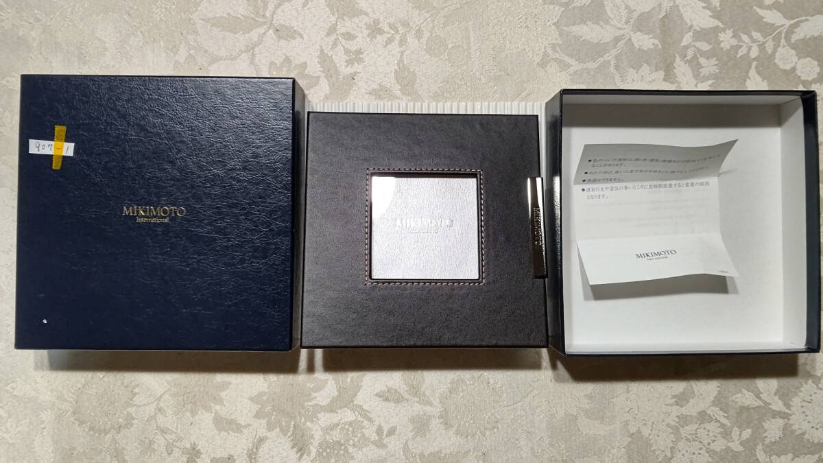 - 907-1 ミキモト 外枠本革レザー シルバー金属にMIKIMOTOロゴ フォトフレーム(外枠14×14内枠6.3×6.3㎝)箱入り