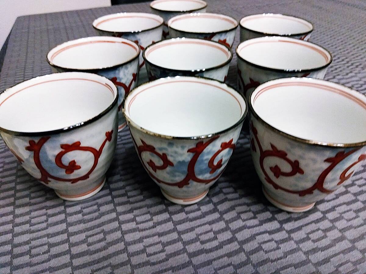 - 美品 織部 おりべ 湯呑み茶碗 器 菓子器 陶器 コップ 9点セット 9客 カップ 小鉢
