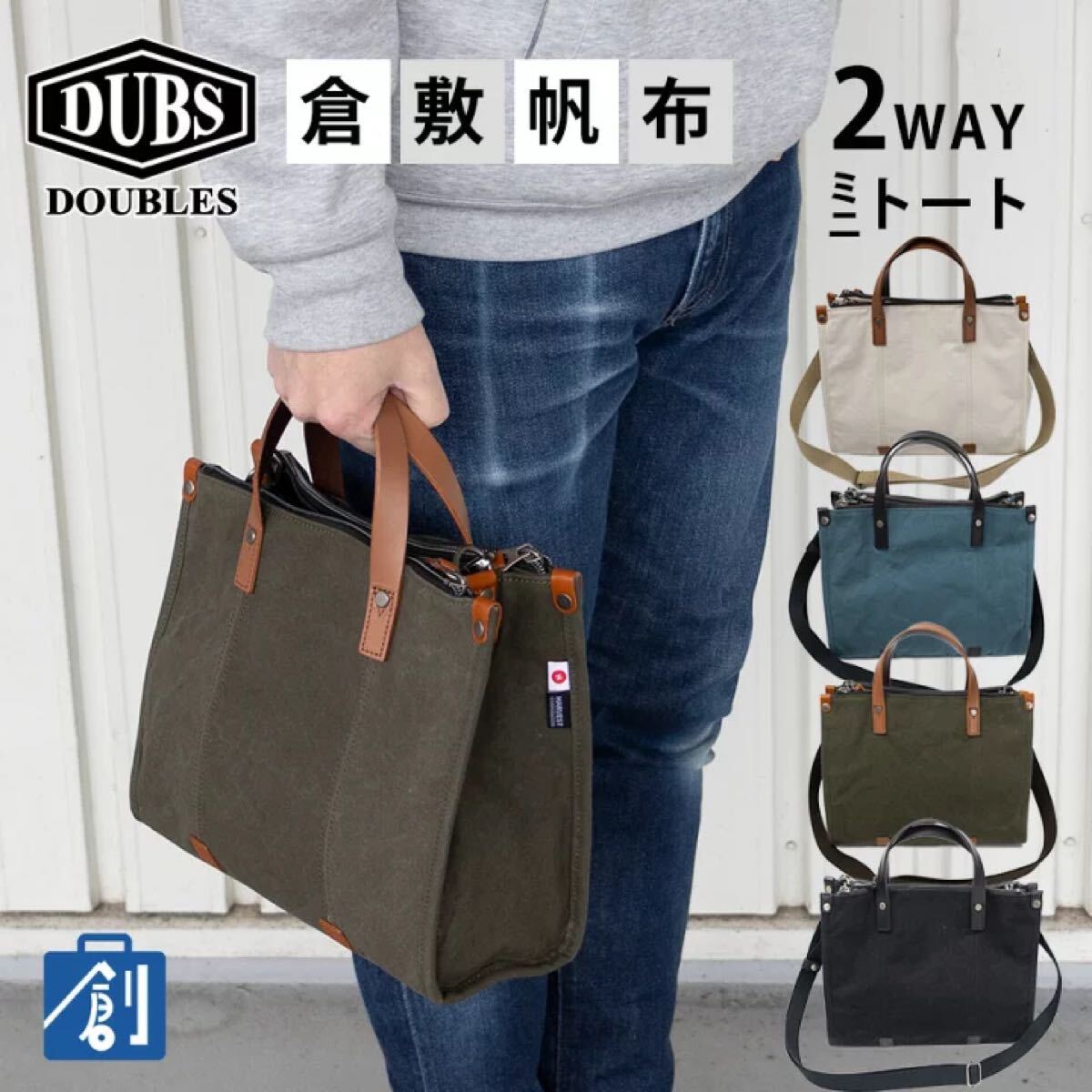 - トート バッグ ミニ トートバッグ ショルダーバッグ 2WAY ショルダー 手提げ 倉敷 帆布 手付き B5 DOUBLES ダブルス 倉敷帆布 BQZ 7438