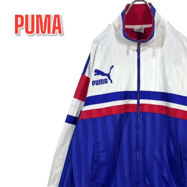 - PUMA プーマトラックジャケット 90s 太アーム ロゴ刺繍 トリコロール ヒットユニオン