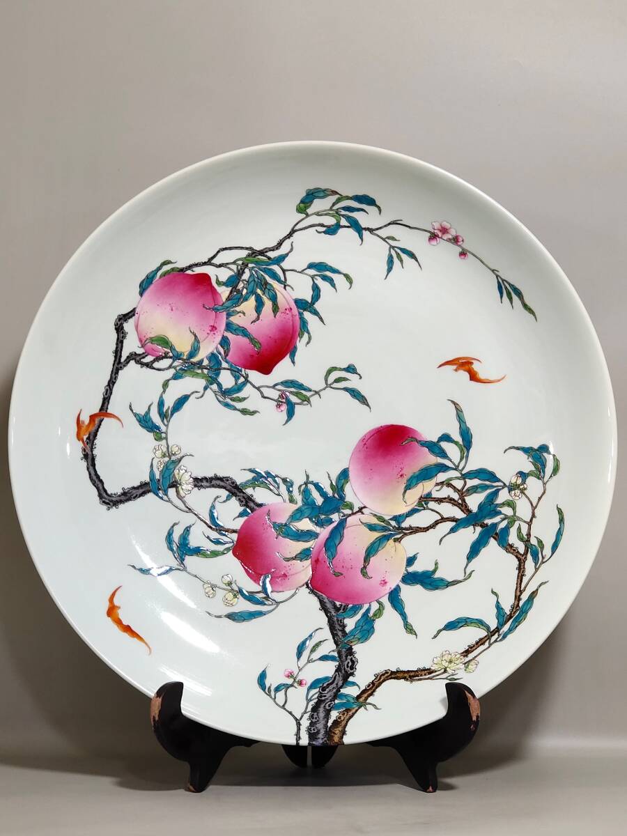 - ◆珍蔵◆中国古美術 大清雍正年製款 粉彩 五福八桃紋大盤 精品 細密細工造 置物 擺件 古賞物 時代物 A43