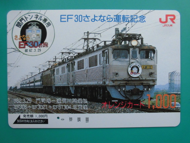 > JR九 オレカ 使用済 EF30 さよなら 運転記念 門司港 遠賀川 関門トンネル 1穴 【送料無料】