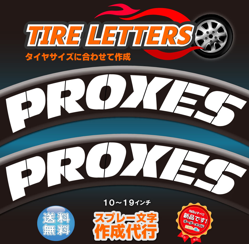 > PROXES×2 デカ文字 太スリット レーシング タイヤレター 新デザイン ホワイトレター タイヤインチごとにサイズ変更してお届け