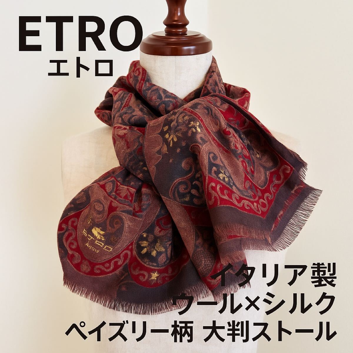 - ETRO エトロ 大判ストール ペイズリー柄 赤系 ウールシルク 伊製
