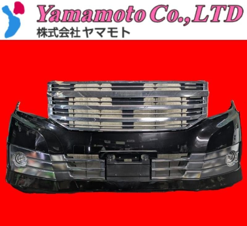 > [Z2205-部]E52系 エルグランド TE52 ライダー 純正 フロントバンパー フォグありタイプ グリル付き GAE/ファントムブラック 個人宅不可