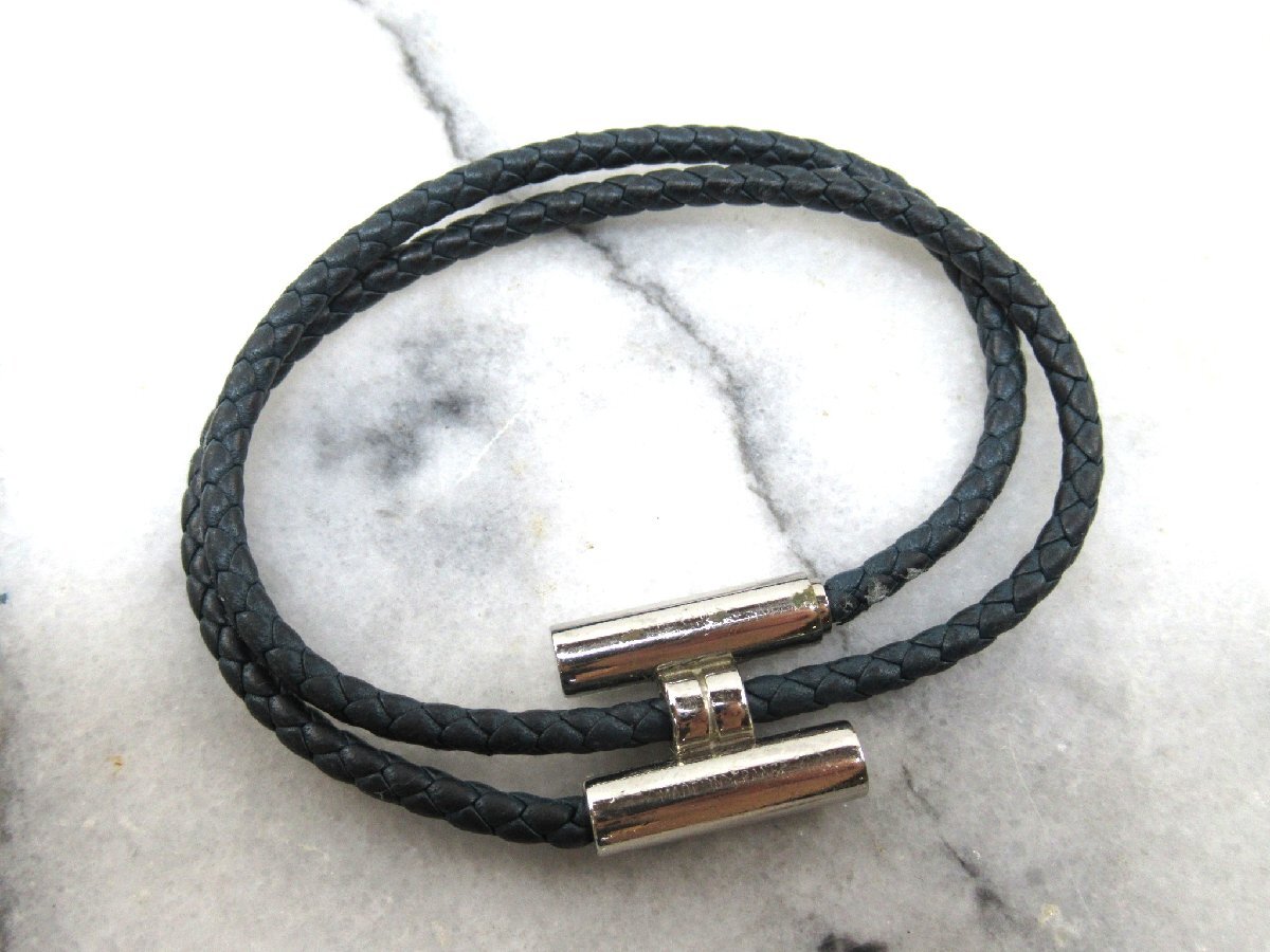 - ★【B送900円】2356 HERMES エルメス トュルニ ブレスレット 2連 レザー×シルバー金具 編み込み Hロゴ フランス製 アクセサリー