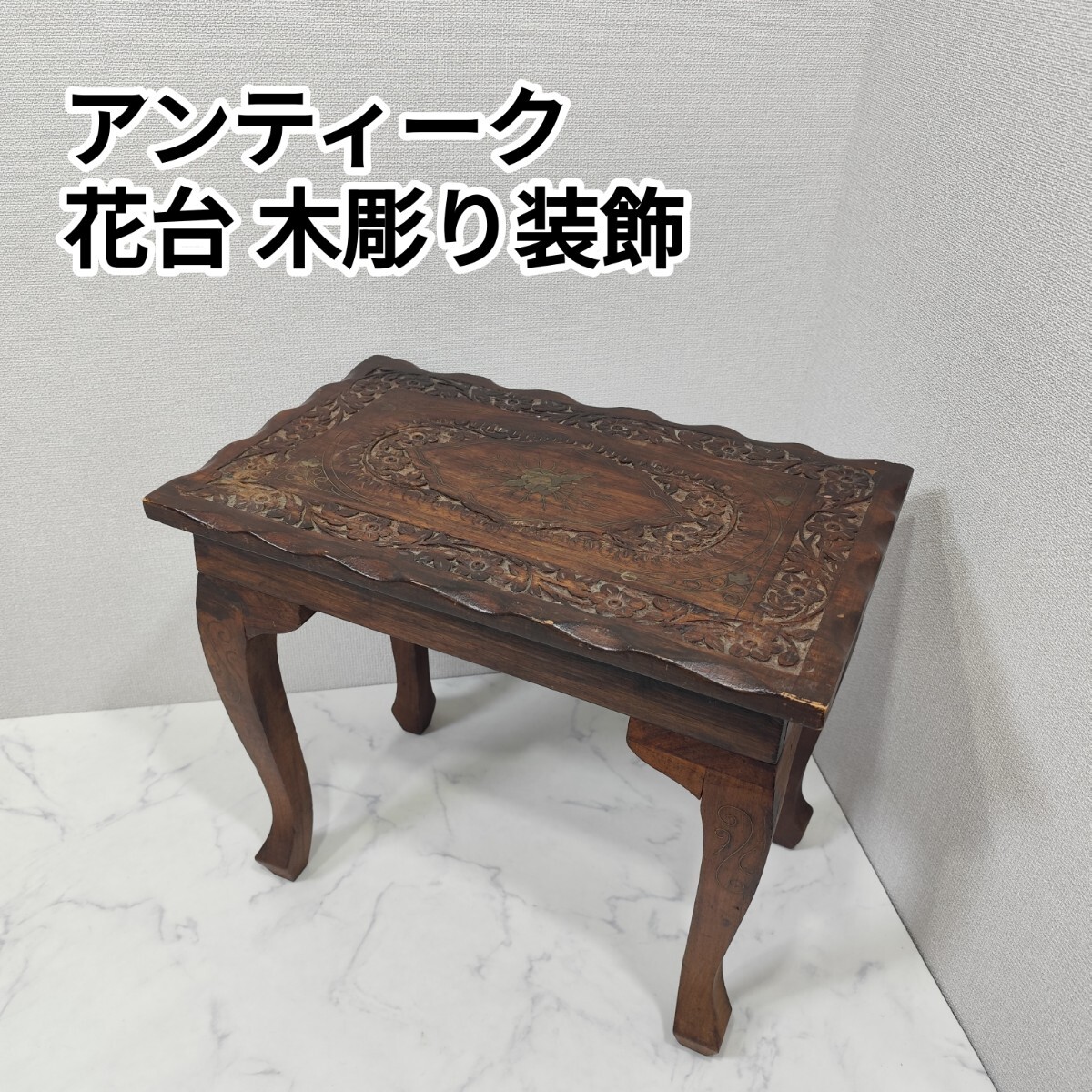 - [希少] [送料無料]アンティーク 花台 飾り台 木製 木彫り 彫刻 サイドテーブル 飾台 猫足