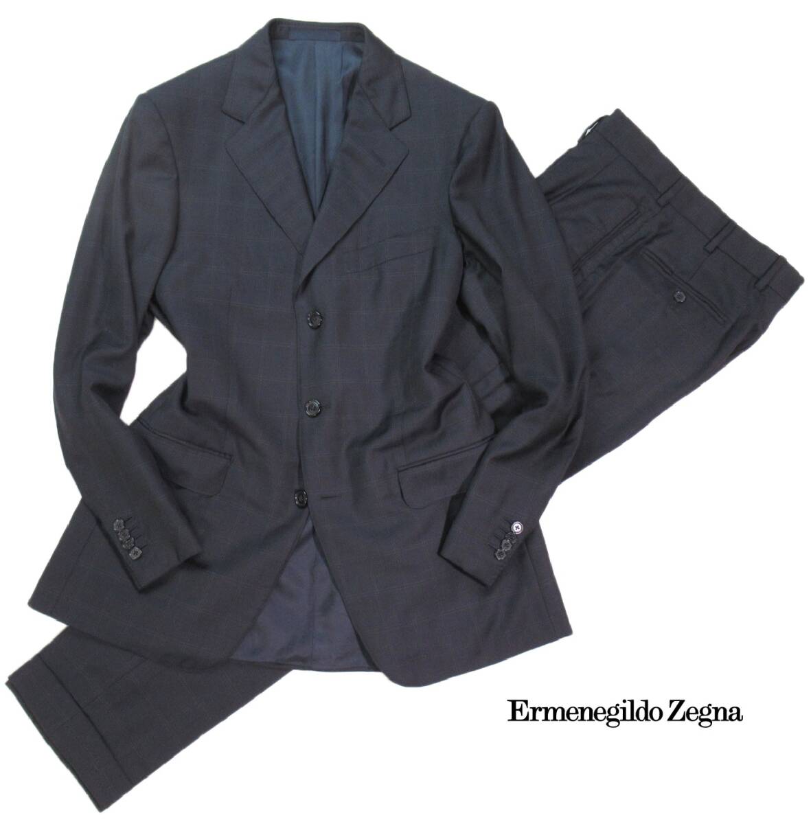 > エルメネジルドゼニア Ermenegildo Zegna 上質 ウール ウィンドウペン 3B スーツ 48 L