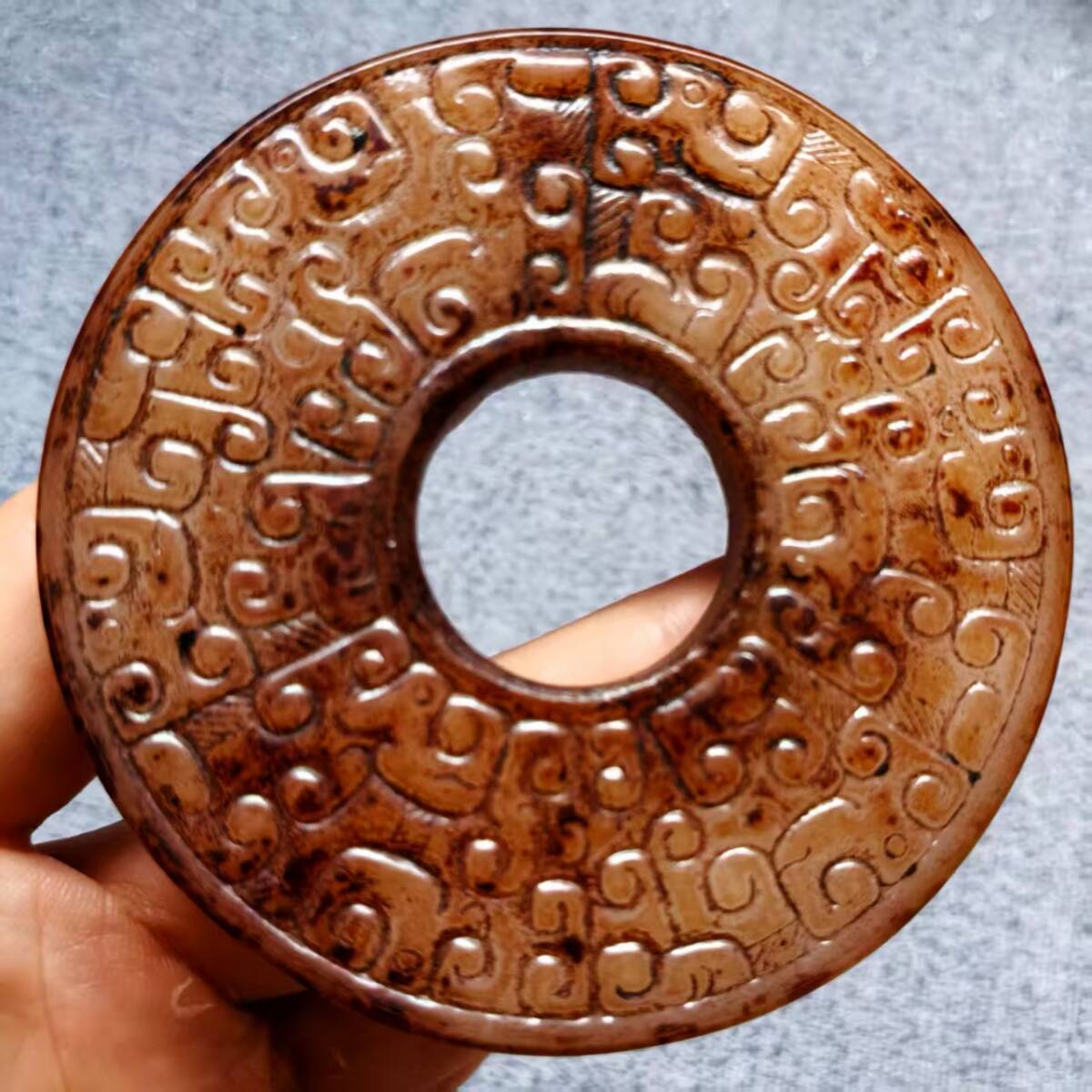 - 古紋銘文・和氏璧 古玉 秘藏 清代 白玉 唐物 古玉彫 天然石 稀少珍品 古美術 古賞物 古置物 旧蔵 AC90806