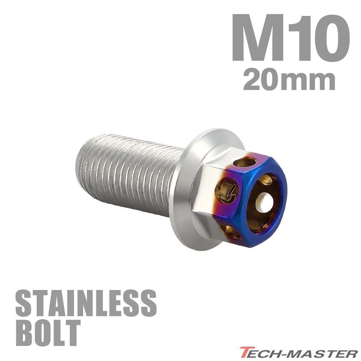 > M10×20mm P1.25 フランジボルト ヘキサゴンヘッド ステンレス シルバー×焼きチタンカラー エンジン 車 バイク カスタム 1個 TB0699