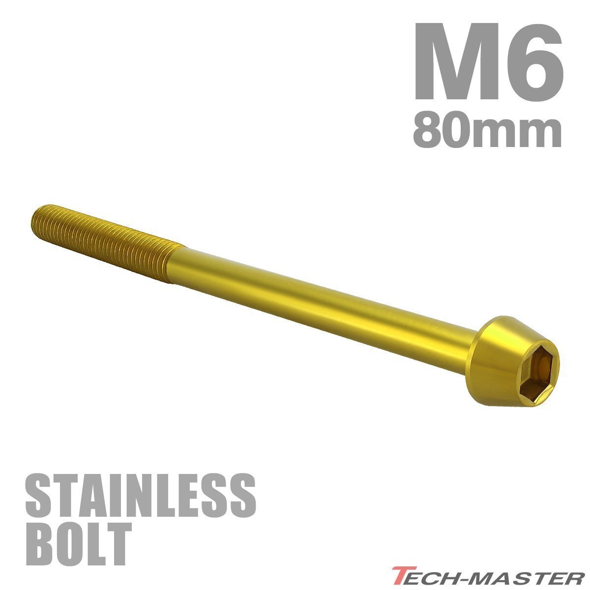 > M6×80mm P1.0 キャップボルト テーパーヘッド ステンレス ゴールド カウル フェンダー エンジン 車 バイク カスタム 1個 TB0085