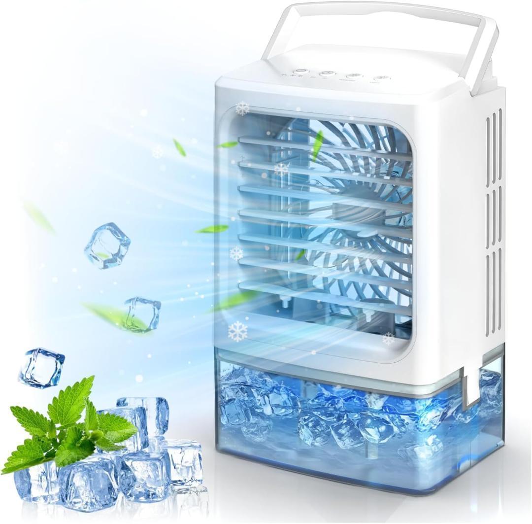 - 冷風機 卓上冷風機 大風量 加湿 LEDライト USB給電式 小型 白 6役