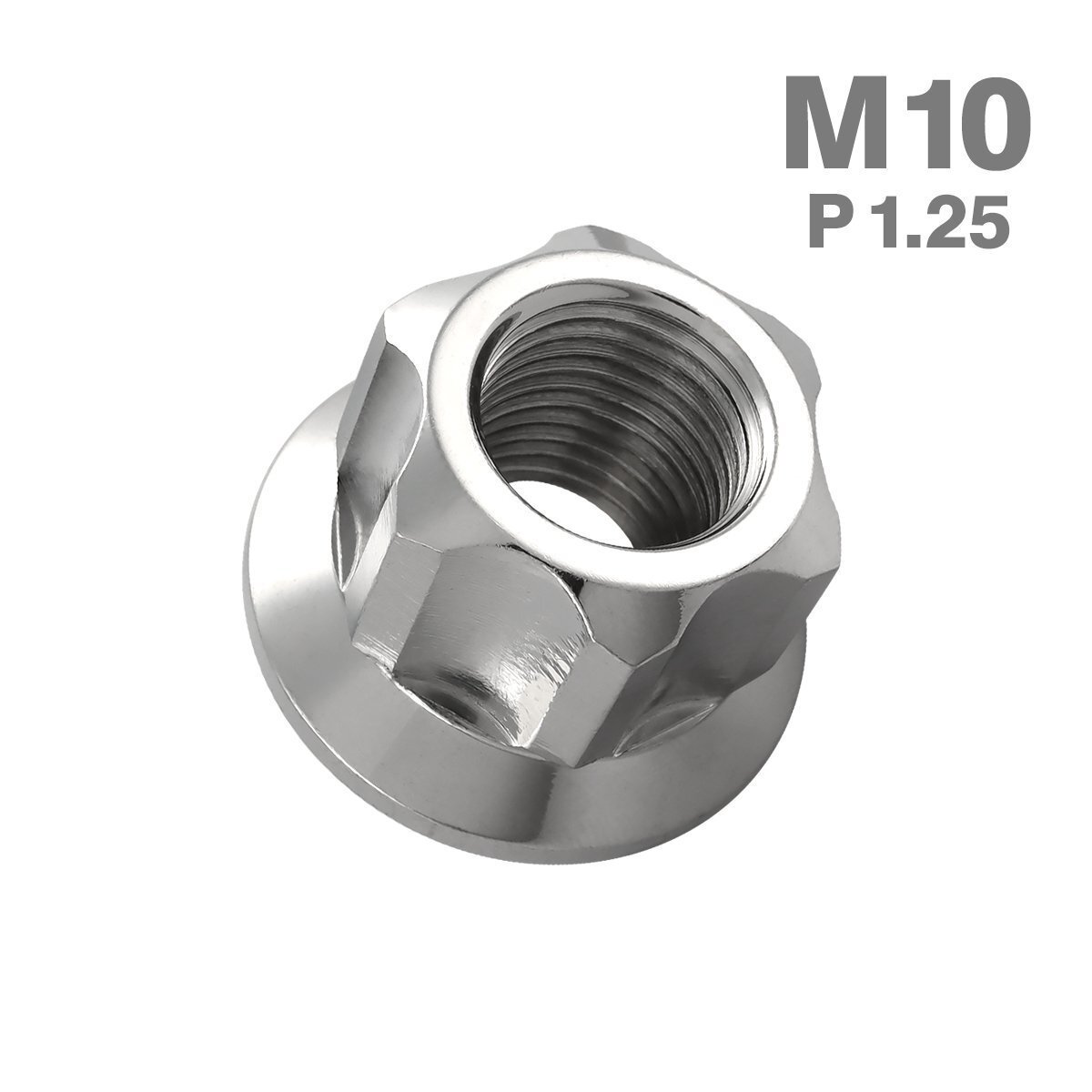 - M10 P1.25 六角ナット ロング貫通ナット マフラーナット フランジ付き ステンレス シルバー カウル フェンダー バイク 1個 TF0054