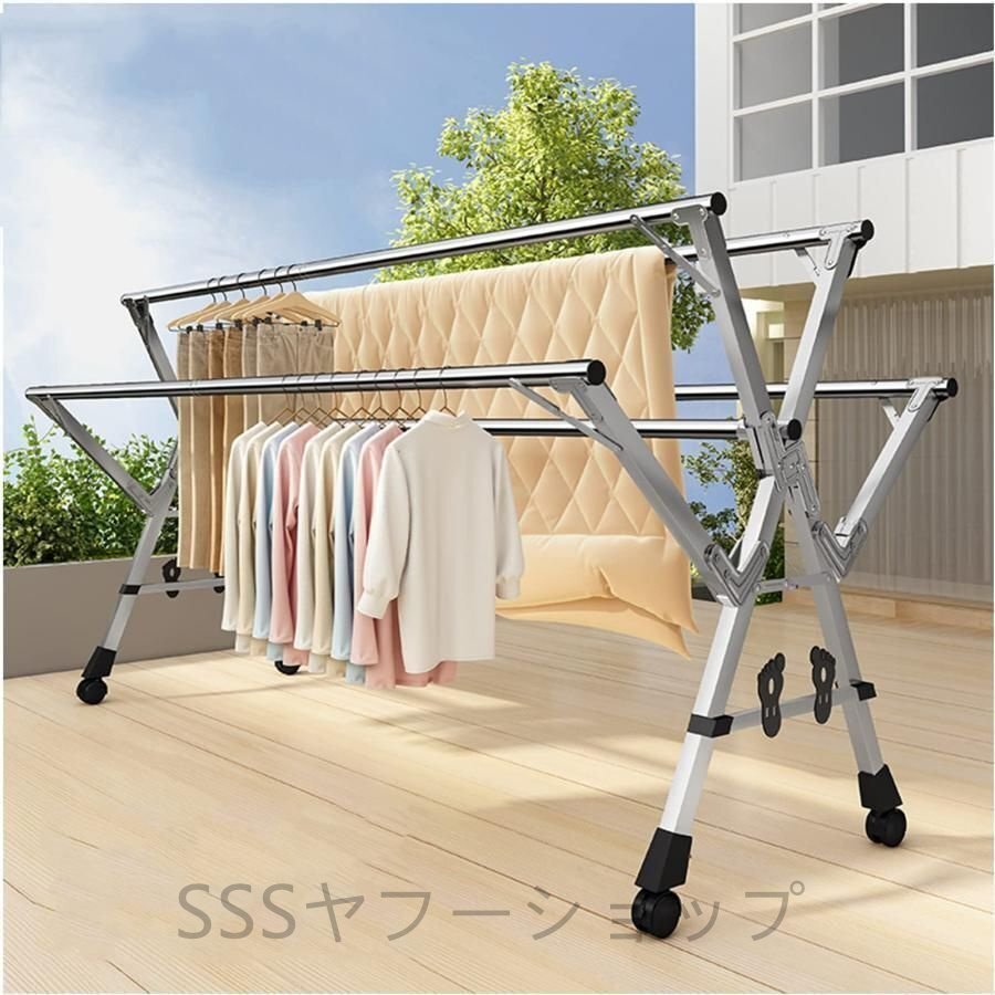- ふとんほし 屋外 ステンレス 倒れない 伸縮式 折りたたみ式 屋外 室内 ベランダ 風に強い 錆びない 布団干し 物干しスタンド キャスター