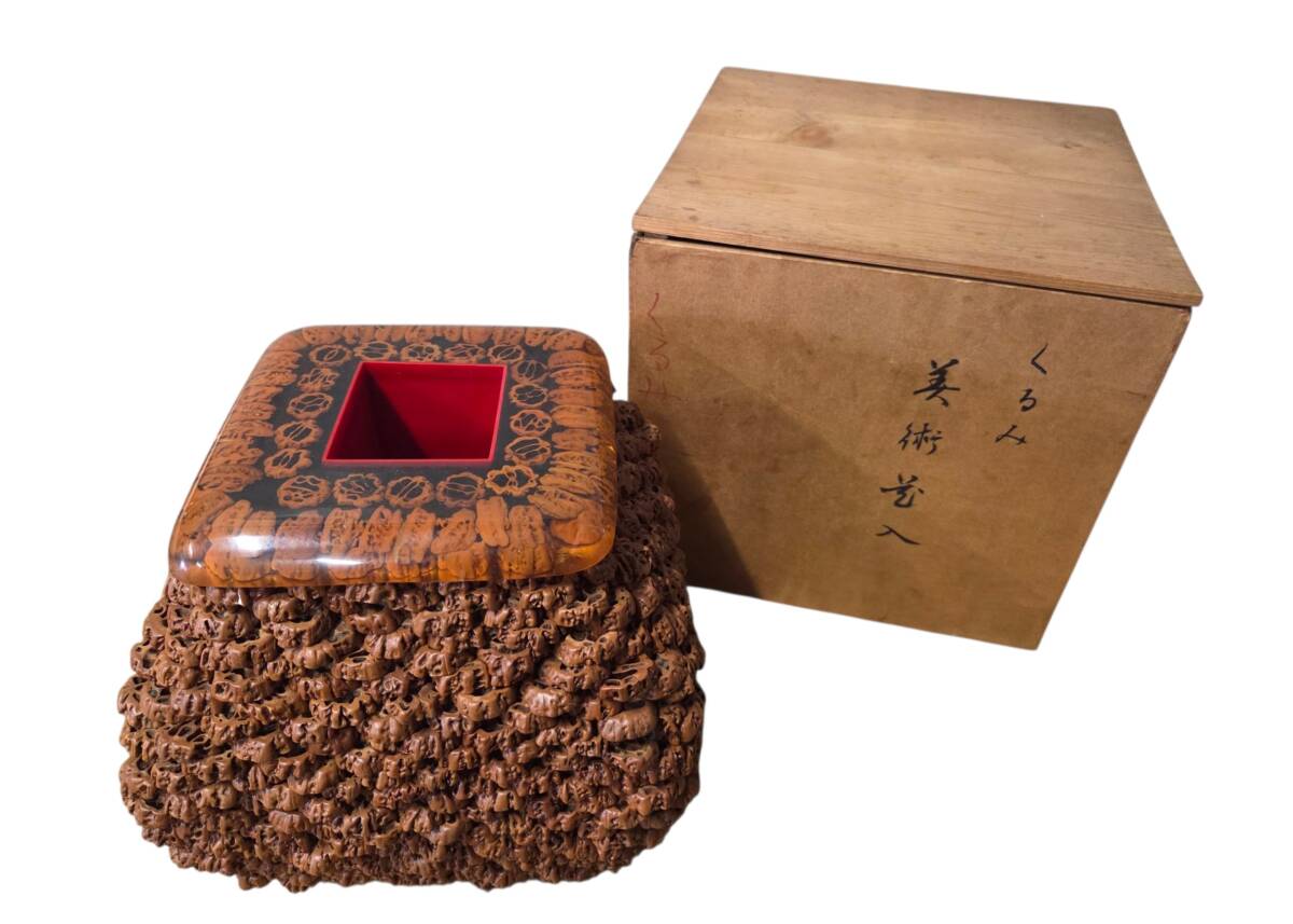 > レトロ アンティーク くるみ くるみ美術くず入れ くず入れ 深さ 約13.2cm 口径 約7cm 高さ 約25.5cm 横幅 約21cm 0909-012(10)