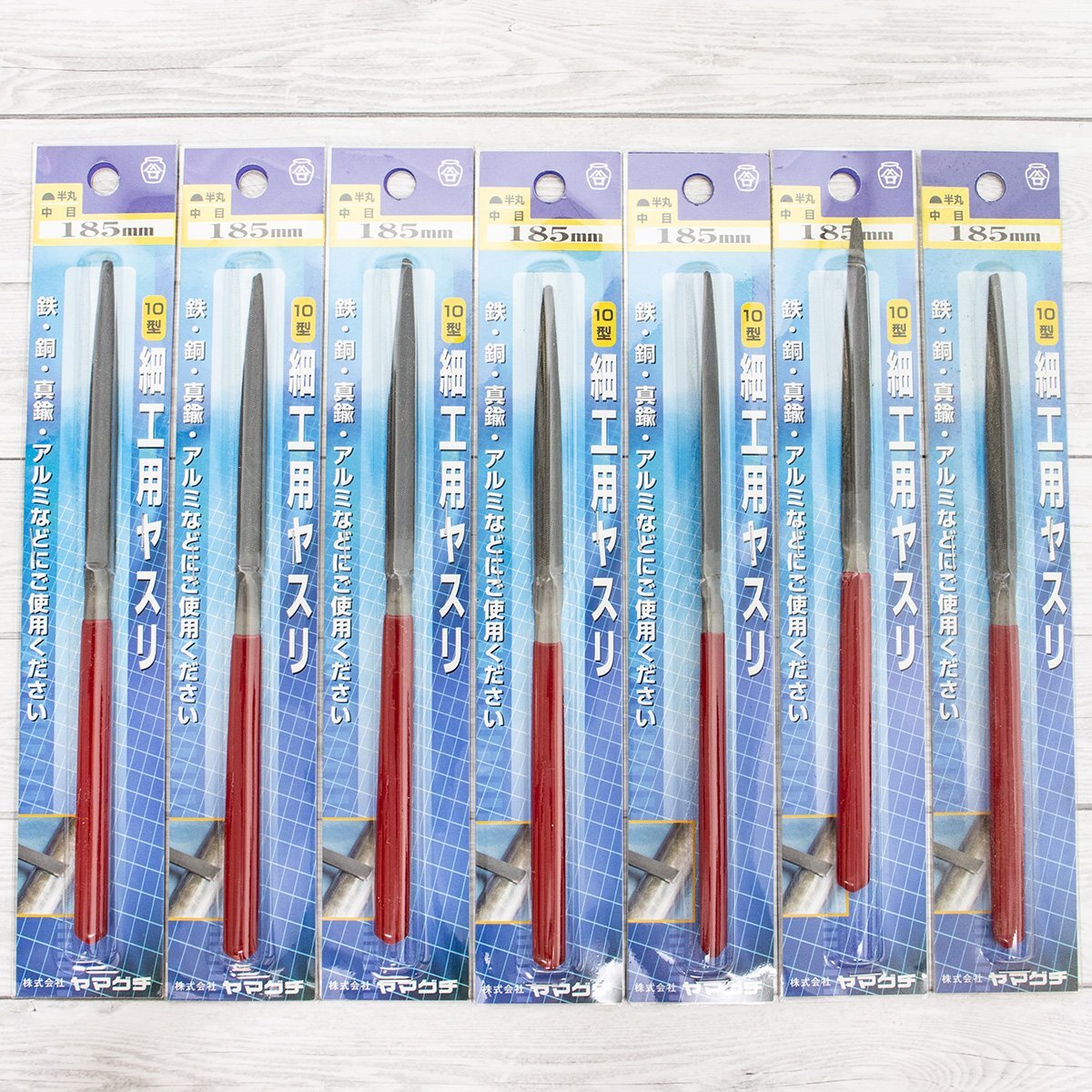 - ヤマグチ 細工用ヤスリ 10型 半丸 中目 185mm / 7本 未使用品 長期倉庫保管品 JAN:4531521000676 鑢