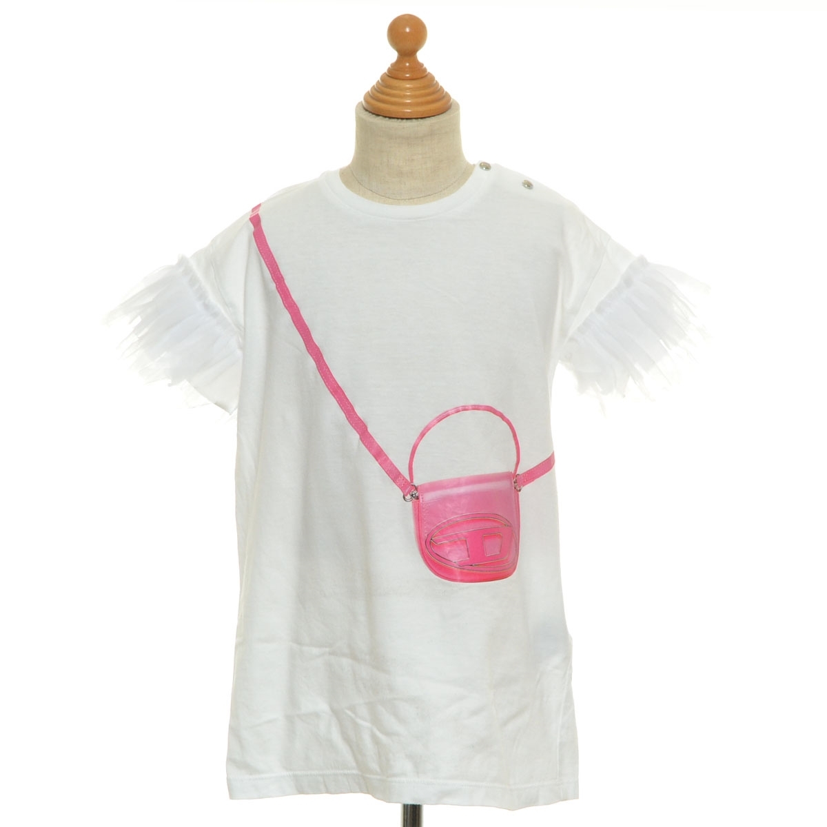 - ■531578 DIESEL ディーゼル ●Tシャツワンピース チュール袖ポシェットプリントOP サイズ24-36(97cm) キッズ 子ども 女の子 ホワイト