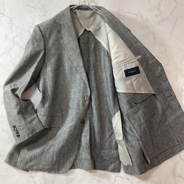 > メンズ バーバリーロンドン ジャケット 仮切羽 サイドベンツ背抜き リネン 麻 シルク 絹 春夏 L 濃グレー系 BURBERRY LONDON B1347