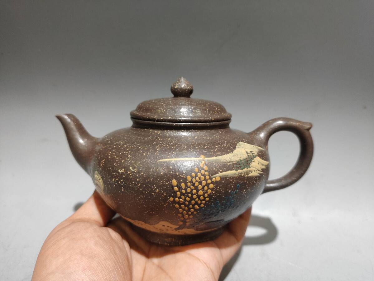 - 【超珍館蔵】紫砂壺 泥繪笑櫻壺 福記款 古銅砂 茶具 茶道品 置物 賞物 古賞物 古董品 古美術品 時代物 旧家蔵出 稀少珍蔵品