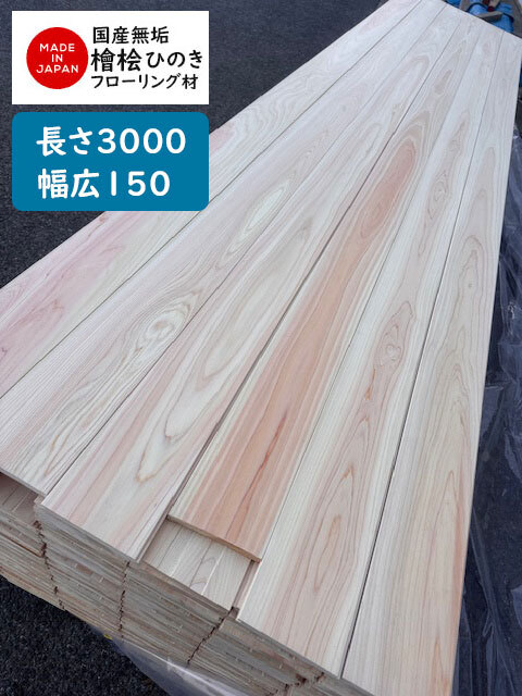 > 1-42-3-150【訳ありAB級・幅広150】高級国産無垢 桧ひのき 檜ヒノキフローリング 無節上小(ほとんど無節)無塗装 床材芳香 田)