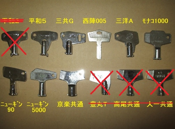 - レトロ パチンコ台 台鍵 8種類 平和 三共 西陣 三洋 京楽 モナコ 奥村 ニューギン 昭和 キー カギ かぎ