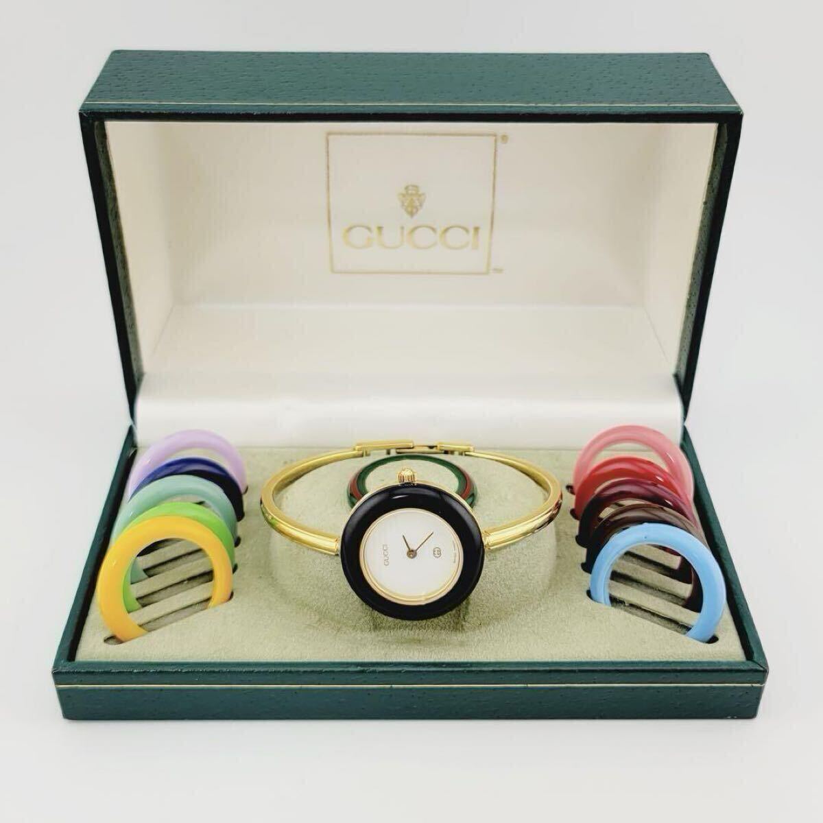 > 美品 GUCCI グッチ 11/12 チェンジベゼル12色 ホワイト文字盤 ゴールド レディース クォーツ 腕時計
