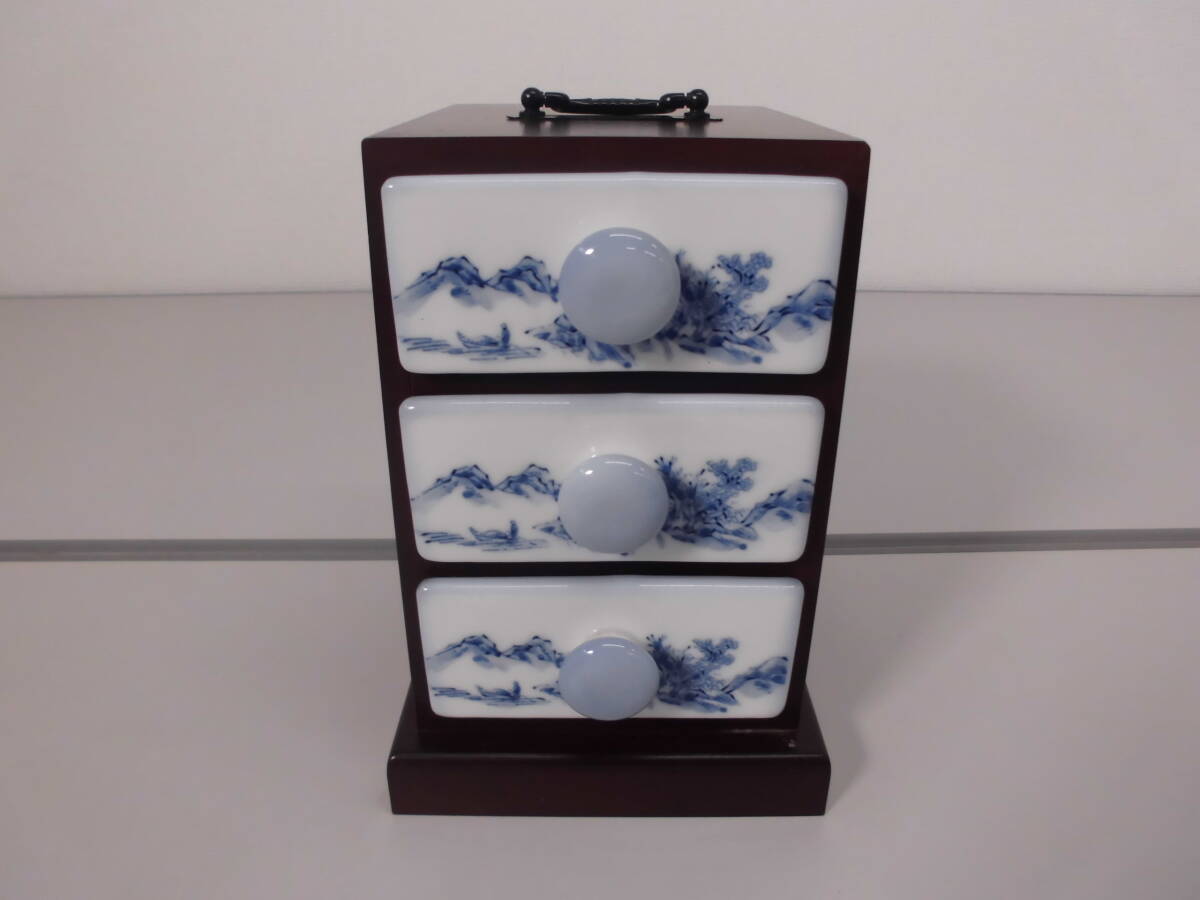 - [F16] 陶器 清水焼? ミニ箪笥 置き物 小物入れ レトロ アンティーク 中古