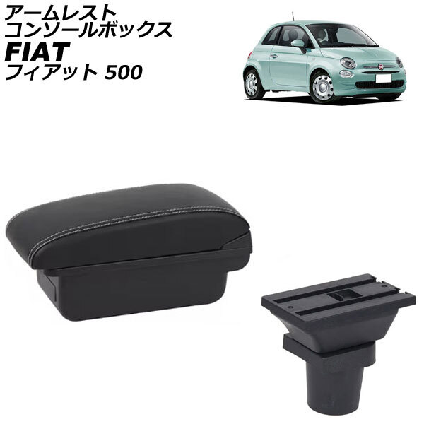 > アームレストコンソールボックス フィアット 500 312 2008年03月~ ブラック×ホワイトステッチ ABS製+レザー USBポート無し…