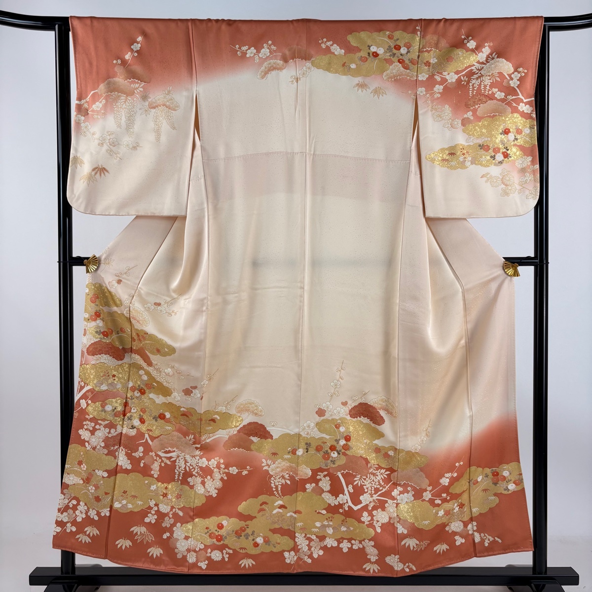 - 訪問着 身丈154.5cm 裄丈63.5cm S 袷 雲文 草花 金糸 金彩 薄ピンク 正絹 秀品 【中古】