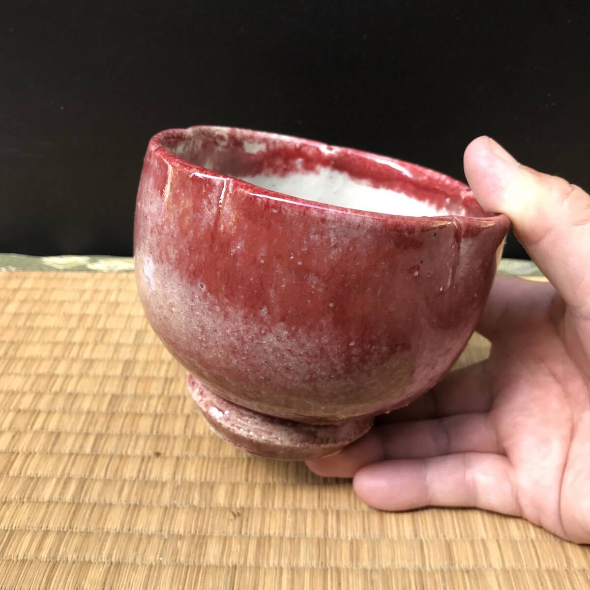 - 辰砂のお茶碗、河井寛次郎風?酒器 猪口 小鉢 盃 杯 珍味入れ(R70807_C)