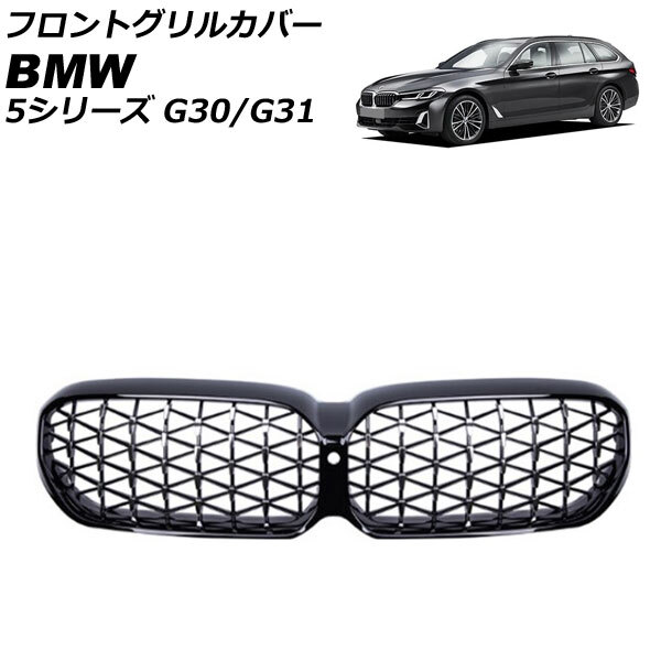 > フロントグリルカバー BMW 5シリーズ G30/G31 後期 カメラ装備車対応 2020年09月~ ブラック×シルバー ABS製 カメラホール付き