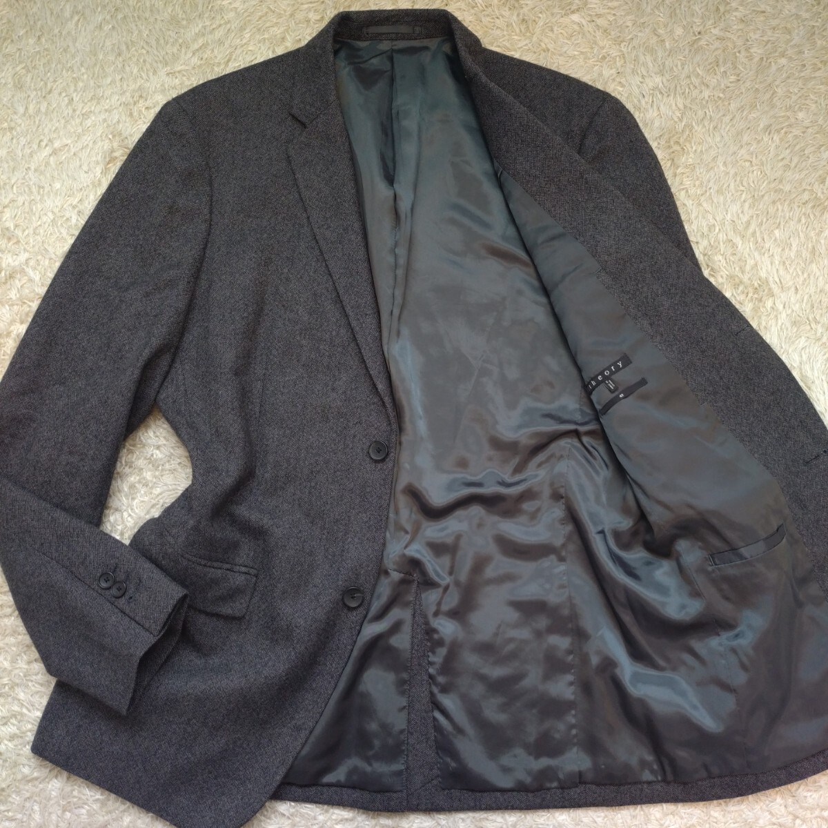 > 超希少XL!セオリー【圧倒的高級感】Theory テーラードジャケット チャコールグレー系 アンコン ウール 2B 本切羽 総裏地 お洒落 42(LL
