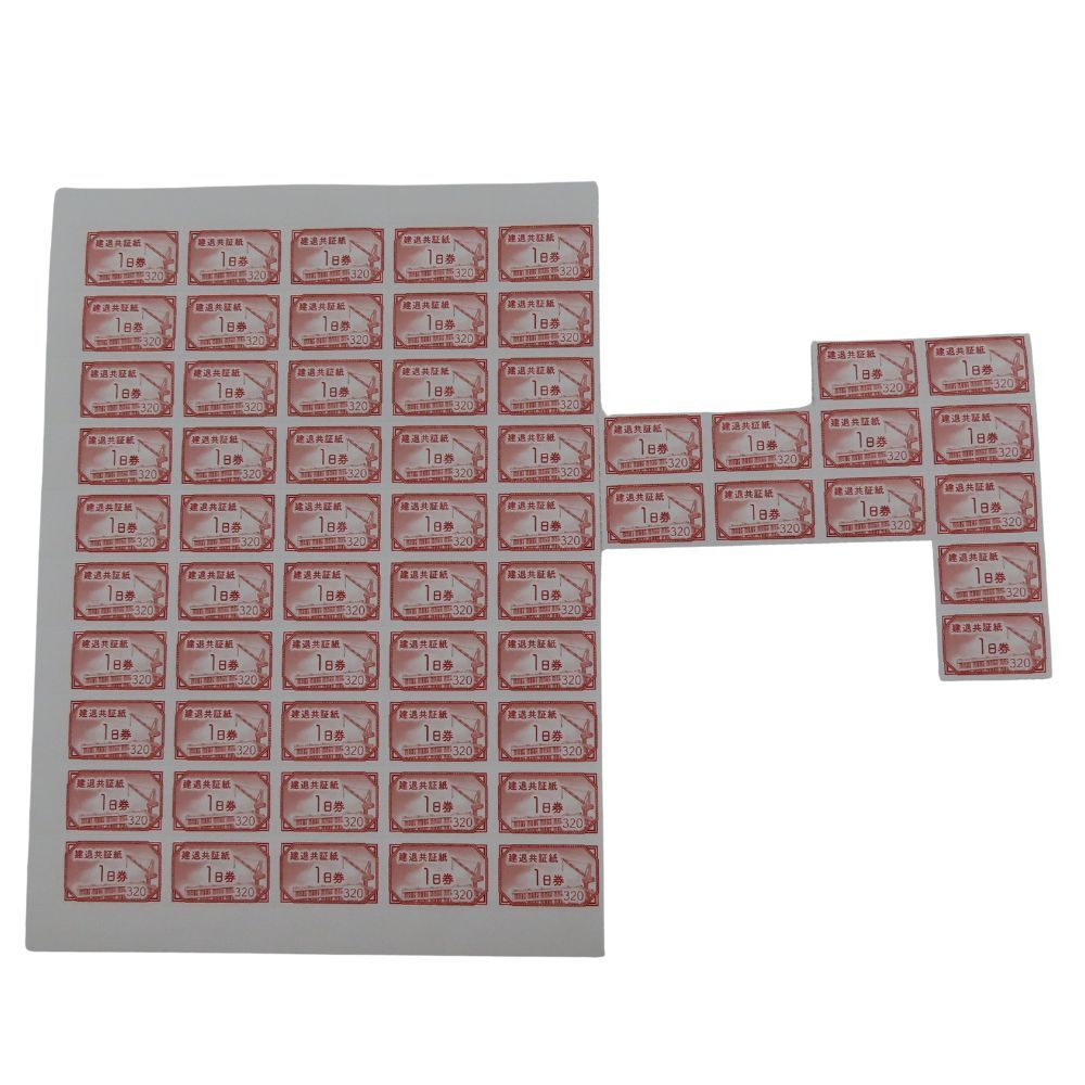 - 建退共証紙 1日券 320円×62枚 額面19840円分 バラ 建退共