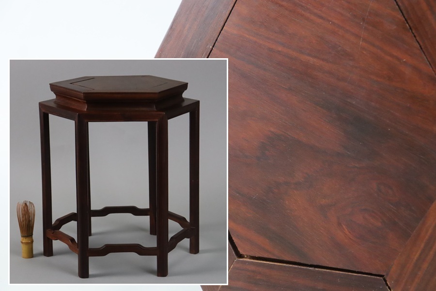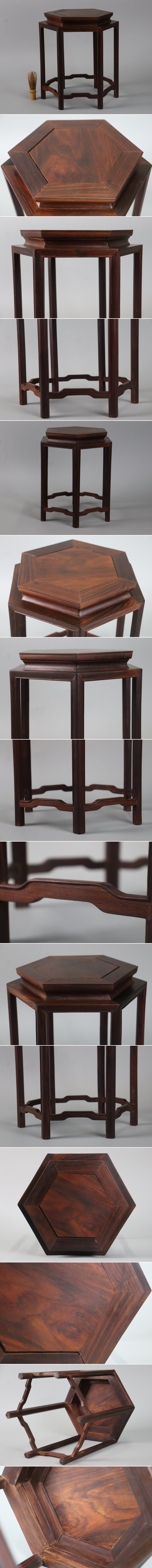 - 中国美術 唐木 六角 高卓 花台 高35,5cm 飾台 香炉台 盆栽台 紫檀黄花梨 細密細工 古美術品[d970]