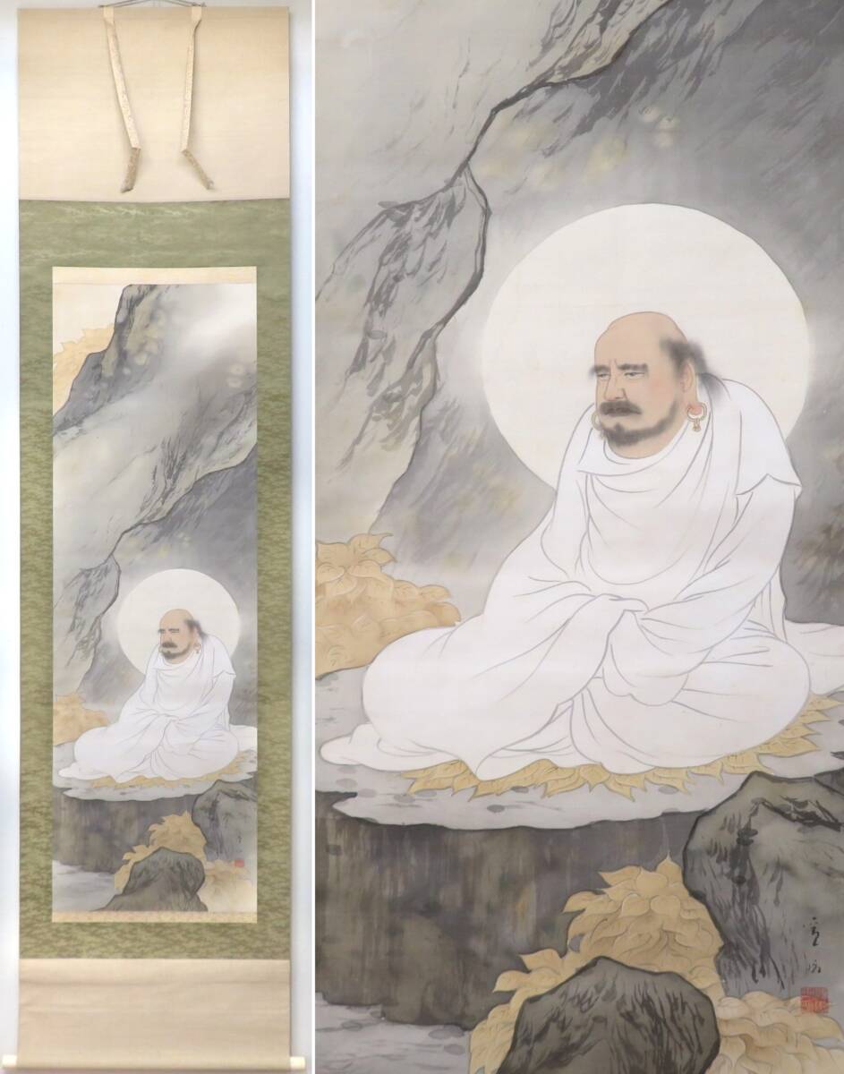 - ◇真作◇ 織田観潮 『石上達磨』 共箱 絹本 軸装 師:尾竹国観 文展 帝展 日展委員