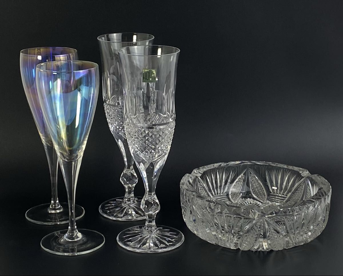 - ★食器色々★HOYA クルスタル シャンパングラス 他 ペア ワイングラス 灰皿 洋食器 5点 まとめ★676★ef652