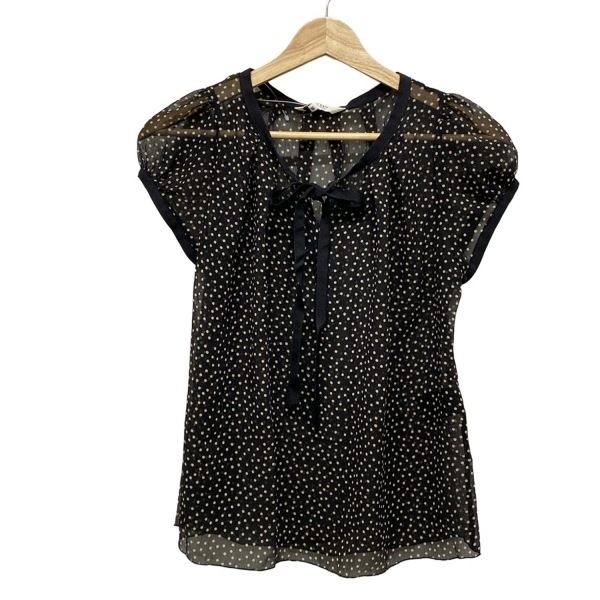 > ランバンオンブルー LANVIN en Bleu 半袖シャツブラウス サイズ38 M - 黒×ベージュ レディース ドット柄/リボン/シースルー トップス