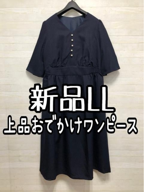 - 新品☆LL♪紺系♪お出かけ上品ロングワンピース♪セミフォーマル☆Q280