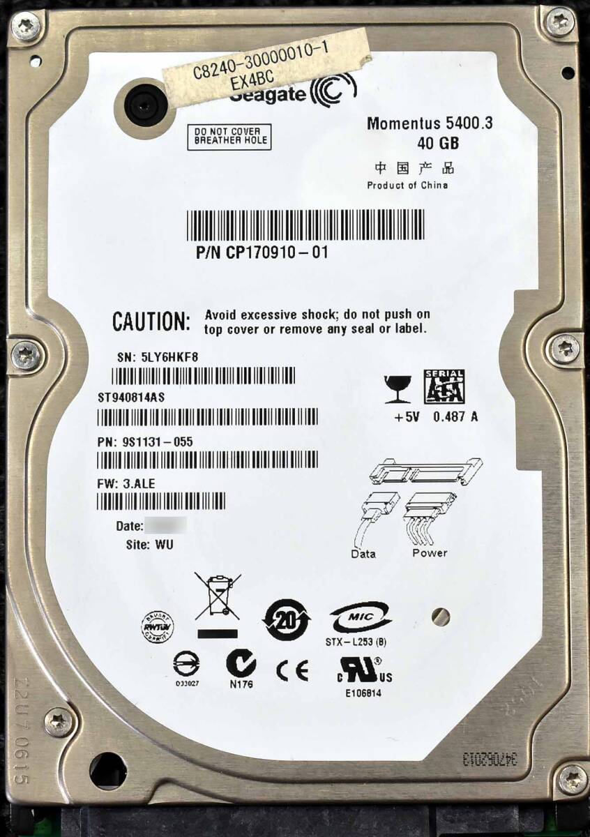 - Seagate ST940814AS [40GB 2.5インチ 9.5mm SATA HDD 使用時間 18430H (Cristal DiscInfo 正常) 【同梱可能】 (管:KH883