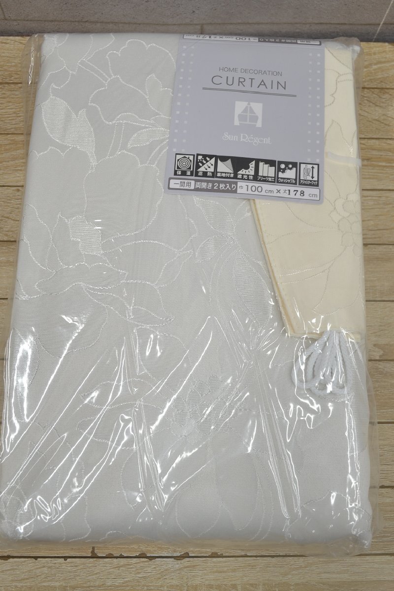 > C2596■未使用・長期保管品■カーテン 一間用両開き2枚入り 幅100㎝×丈178㎝■保温・遮熱・遮光性・プリーツ加工・ウォッシャブル・アジ