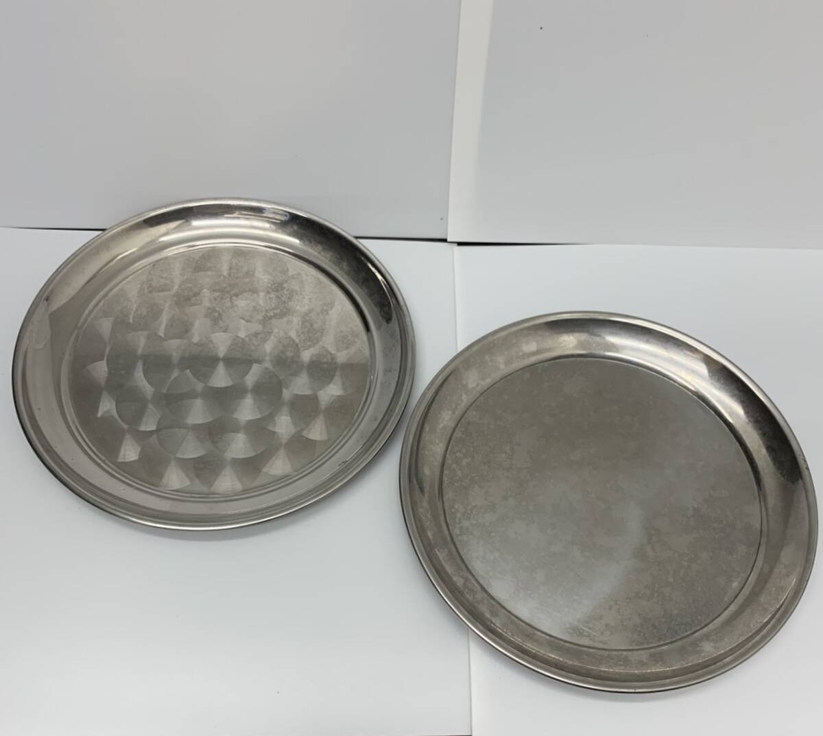 > #4510 ステンレスプレート ステンレス皿 トレー おぼん 中古品 厨房用品 キッチン用品 調理用品 2点まとめ 直径 約25~25.5cm
