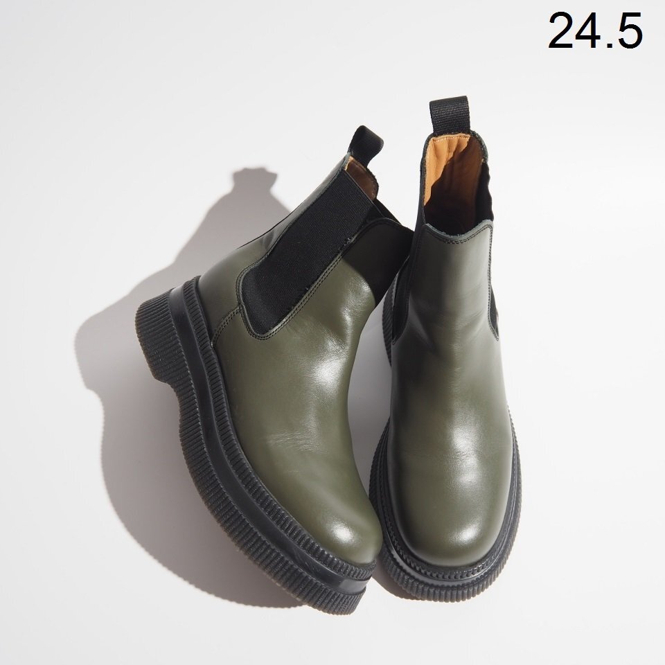 - C4454P ▼GANNI ガニー▼ 厚底ラバー チェルシーブーツ オリーブ 39/24.5cm カーキ S1907 サイドゴア ショートブーツ 秋~春 rb mks