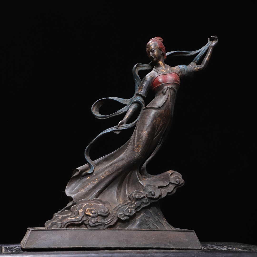 - ◆旧家蔵出◆中国古美術 明時代 古銅製 拓金 飛仙女 細密細工造 置物 擺件 古賞物 骨董 時代物 A01