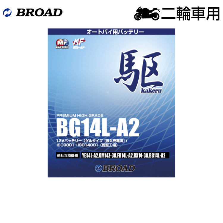 - ブロード 駆 BG14L-A2 オートバイ用・ゲルバッテリー BROAD カケル