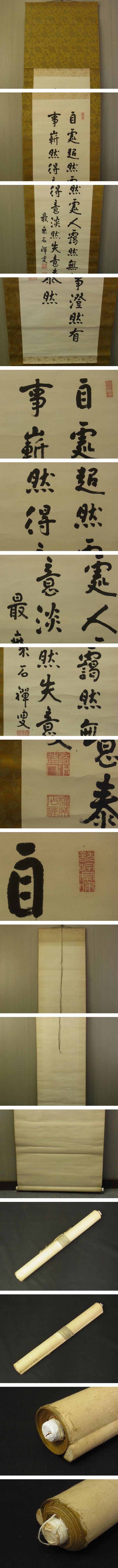 - 【真作】 t1871 蔵出 掛軸 新井石禅 一行書 紙本 肉筆 軸先無し 曹洞宗僧侶 總持寺独住5世 書画骨董 古美術 アンティーク
