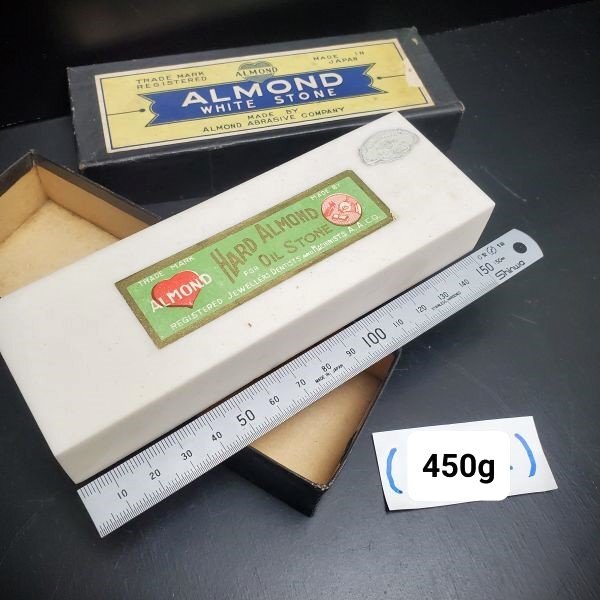 - 【アウトレット品】 ALMOND ホワイトオイルストーン 中 天然? 極細目 153×50×25 油砥石 1点 宝飾品 精密機器 デッドストック sp-024-794