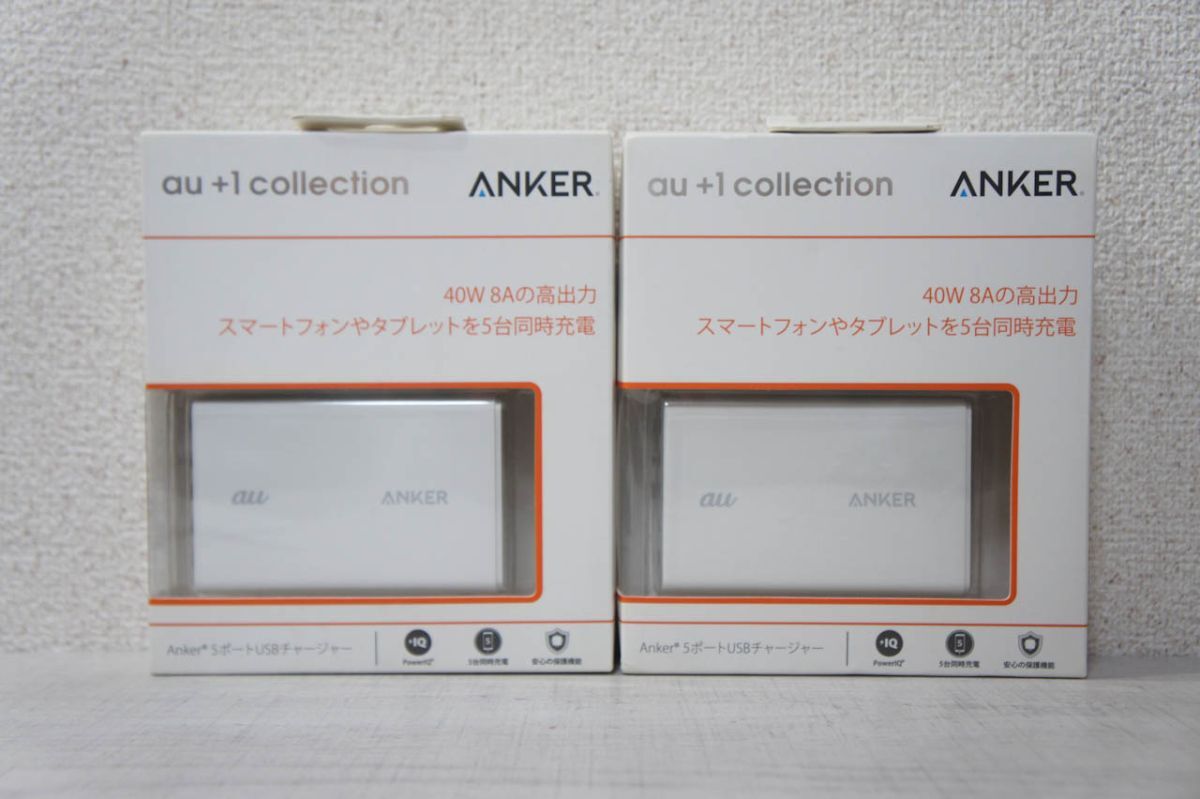 - 【未使用品】【2個セット】Anker アンカー 5ポートUSBチャージャー R05P001W ホワイト au+1 collection 充電器 40W 8A D570